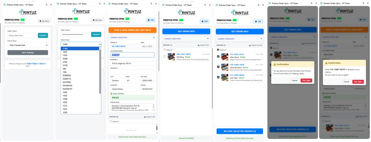 - Nếu sang trang order khác mà có nút “SYNC & AVE ORDER #XXXXXX” (màu vàng) cứ mạnh dạn bấm nó, nó còn order của trang trước chưa được gửi thì nó sẽ gửi đi (không sợ quên hay mất).