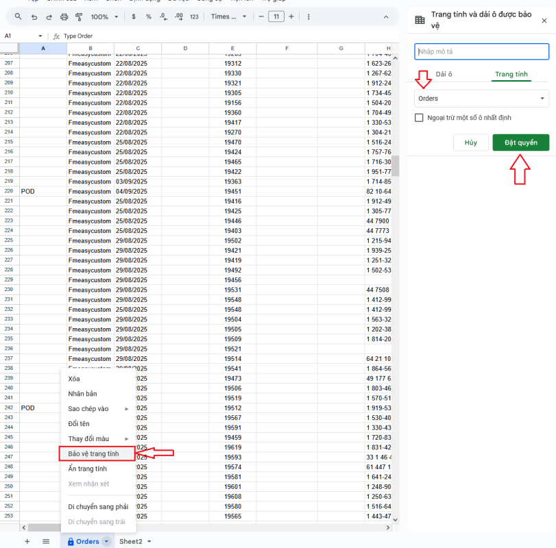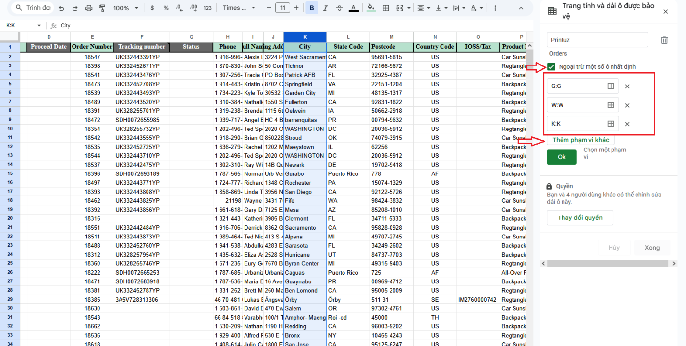 Trong 1 trang tính bảo vệ cũng có thể phân quyền các cột, có thể cho các user khác 1 số cột hoặc hàng ngoại lệ có thể chỉnh sửa trực tiếp, tuy nhiên nếu là file fulfill thì ko nên, cứ nên tạo thêm 1 trang tính.