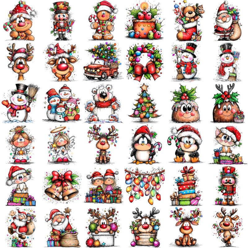 - December: Santa, reindeer, snowman, gingerbread, cozy Christmas