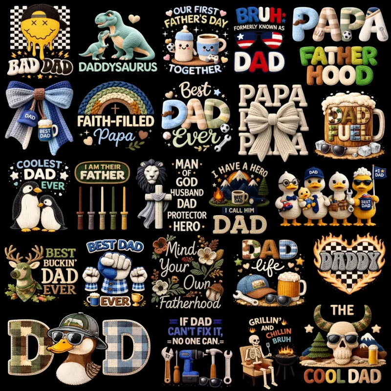 | Father’s Day | grill dad, fishing dad, bold text, tool icons |
