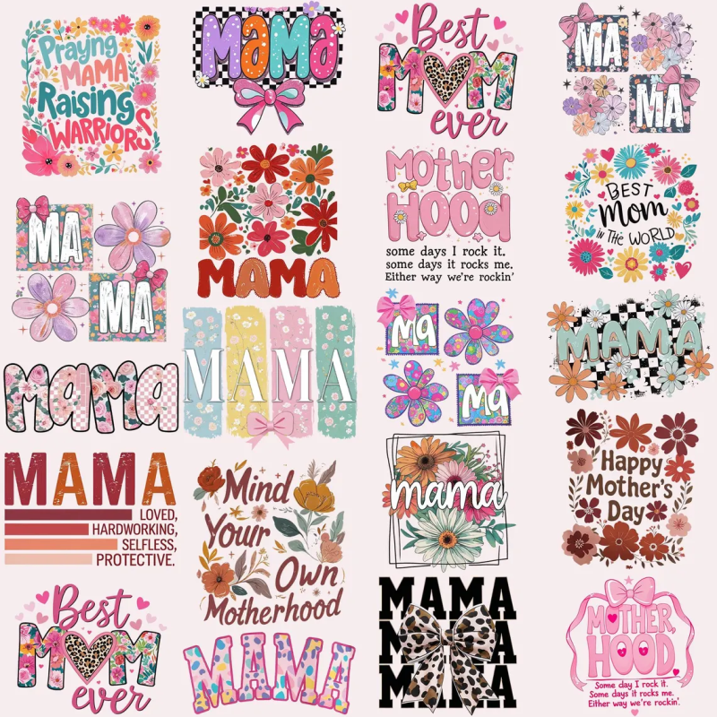 | Mother’s Day | floral mama, bow, soft pastel, line art family |