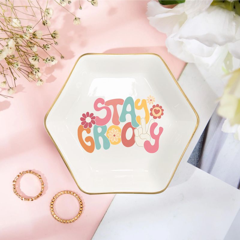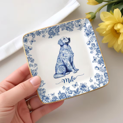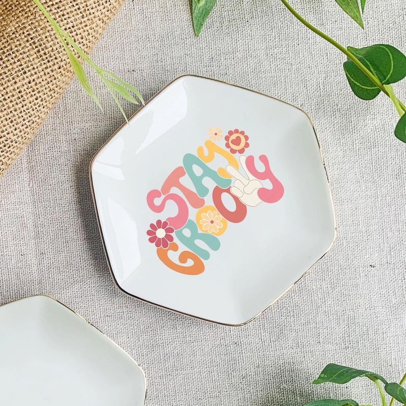 Add a touch of elegance to your vanity or dresser with this Ceramic Jewelry Plate with Gold Rim.