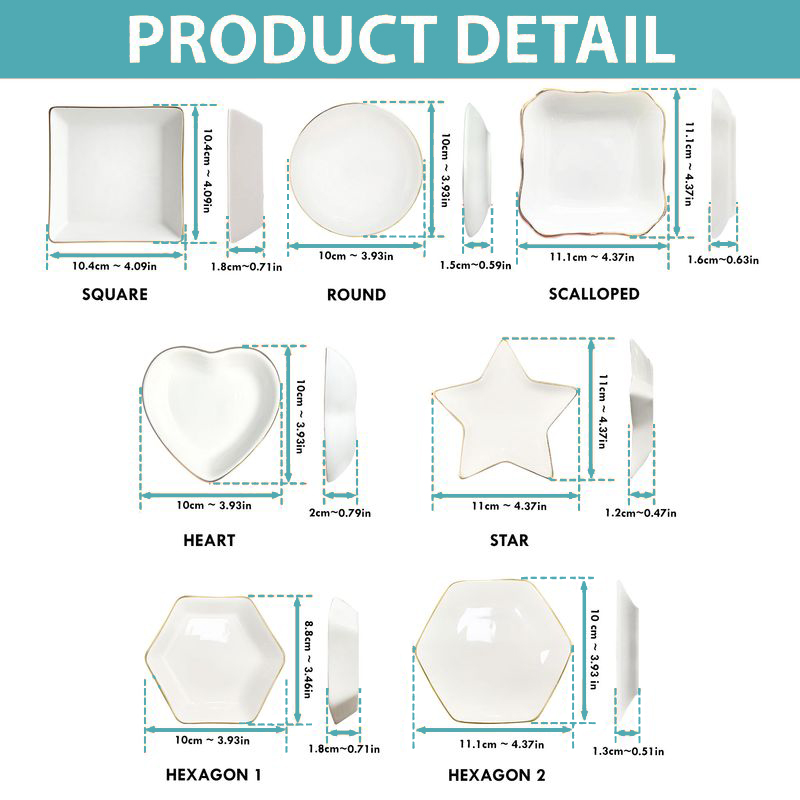 Perfect for holding rings, earrings, necklaces, or small keepsakes, this beautiful dish combines simplicity and luxury — the smooth ceramic base paired with a delicate gold edge brings timeless charm to any space.