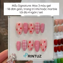 | SIGNATURE | – Use up to 3 colors – Limited decoration: simple hand-painting, marble, gradient, or attach up to 3 small rhinestones/charms per hand | Suitable for mid-range customers who require balance between value and style |